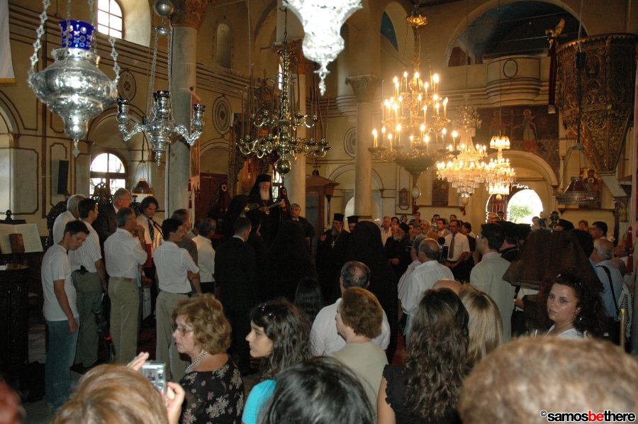 The Patriarch, the "primus inter pares" of the world's Orthodox Patriarchs, arrived in Greece over the weekend, Bartholomeos met with local Samos officials, wine-makers and visited the Metamórphosi church in Pythagorion and the Monasteries Timios Stavros and Megali Panagia.
