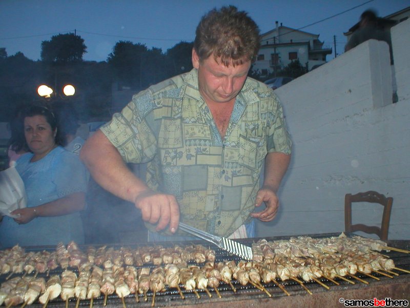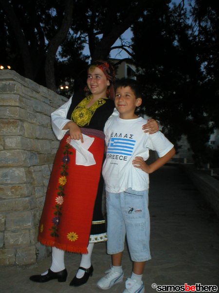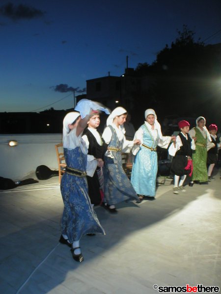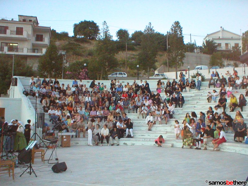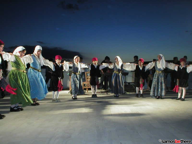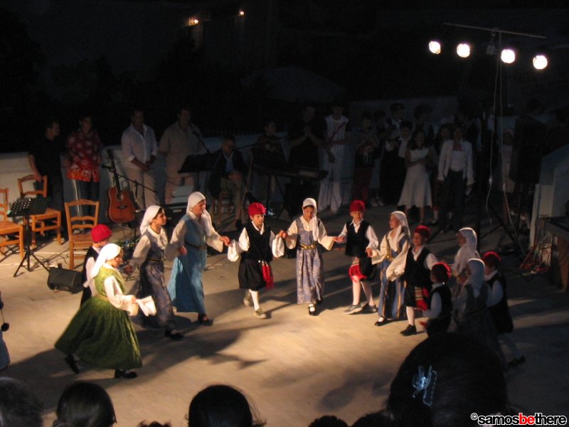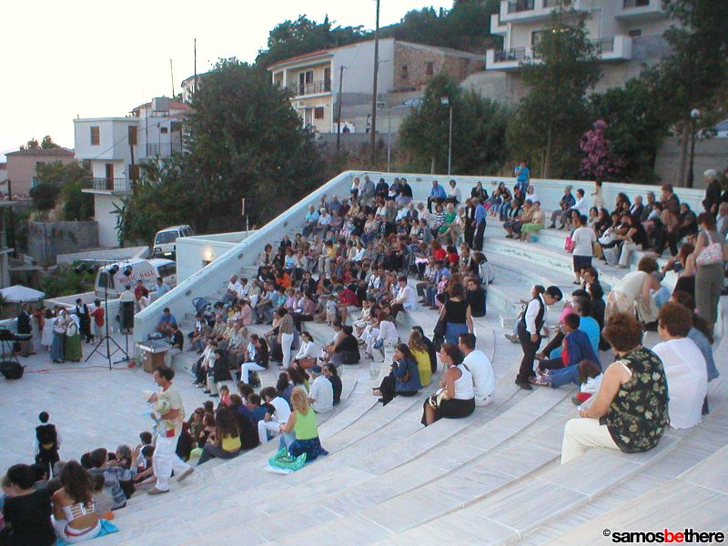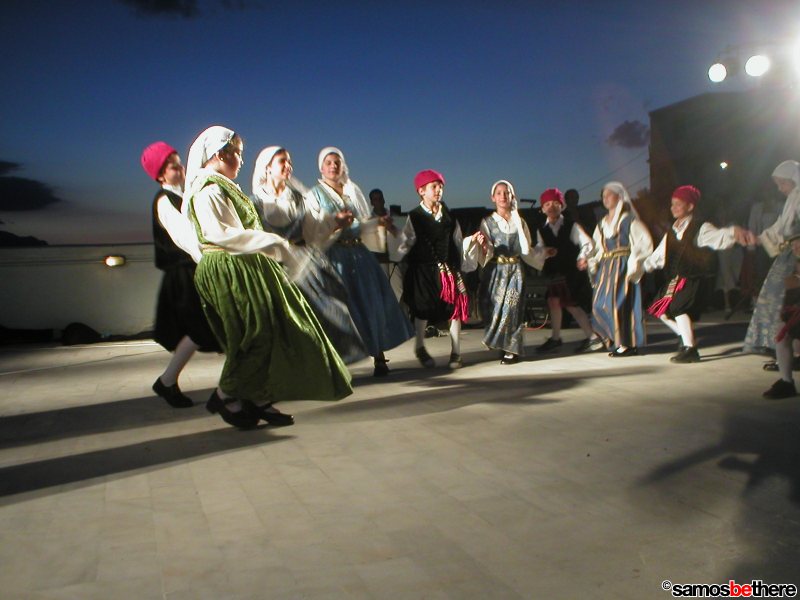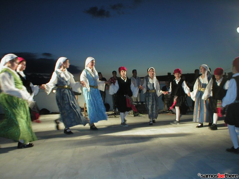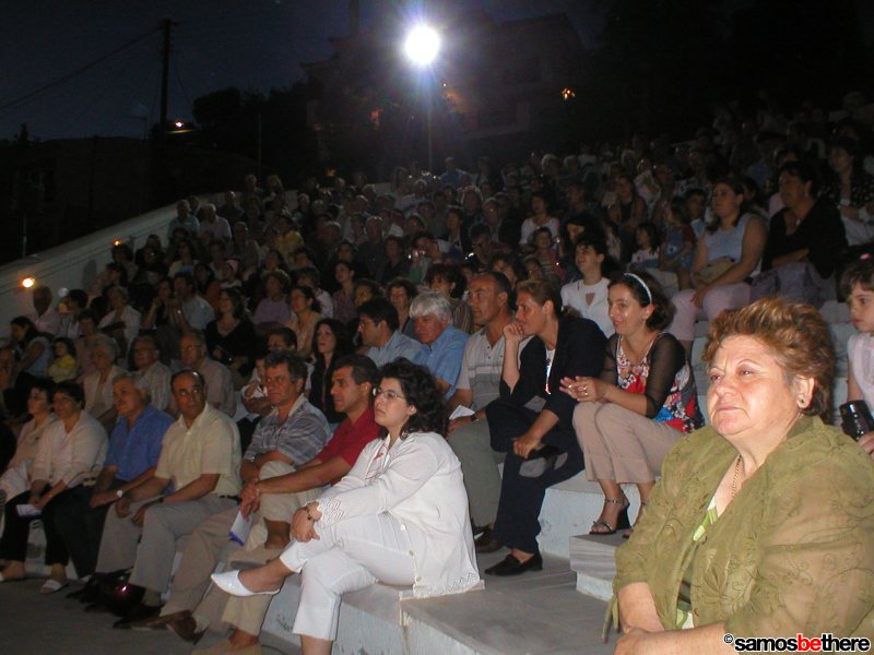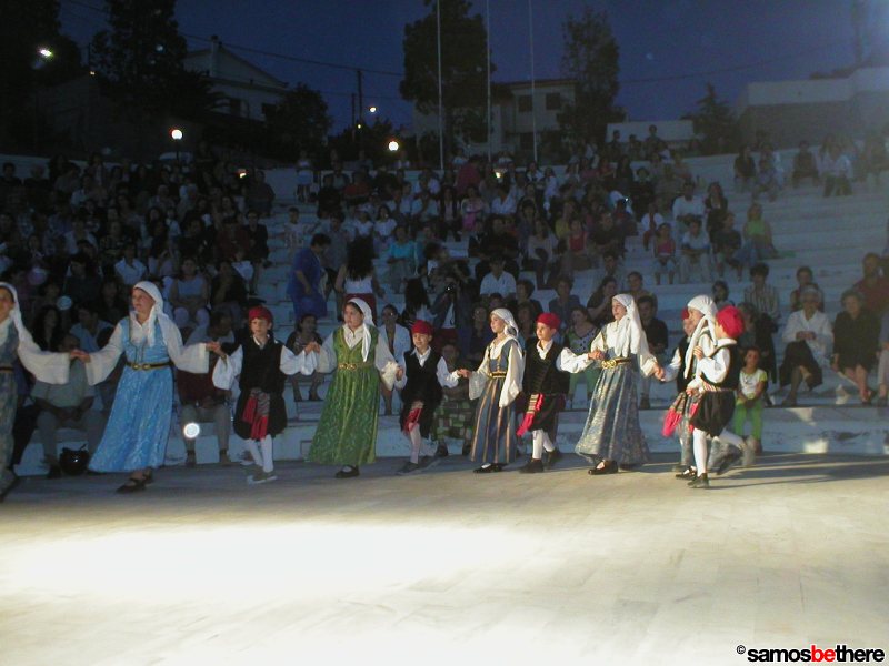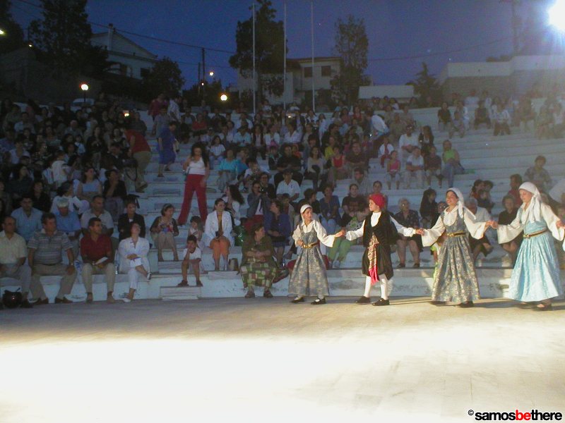 Samos sunset at the day of the celebration of Agios Ioannis Klydonas 2004, with traditional dances and music at the theatre of Ano Vathi. (Samos-town) |