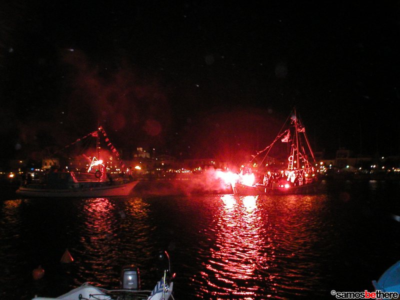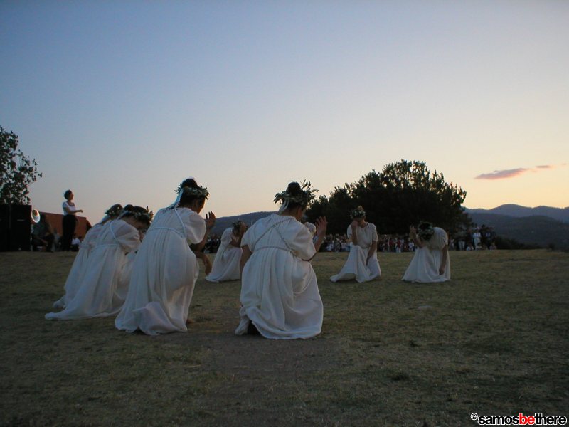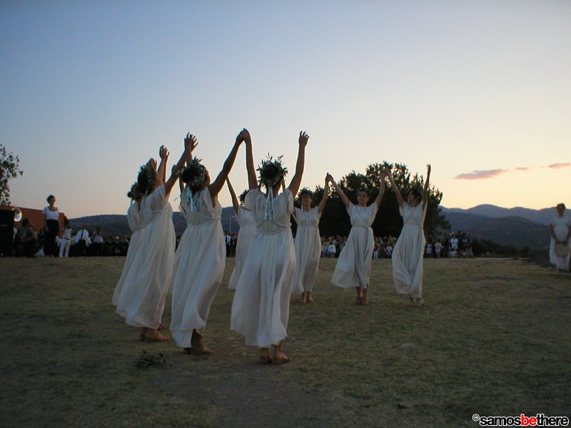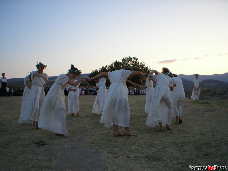 Celibrations in Samos town, Ireon at the temple of Hera with dances, and a run to the statue of Pythagoras in Pythagorion.